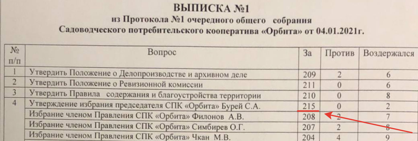 Очень интересное замечание. На этом собрании фактически Бурей Сергей Акимович даже и не избирался, а всего лишь утверждался т.к. последнее его избрание проходило на собрании от 17. 07.2020 г. Это собрание также судом было отменено и последующая апелляция оставлена без изменения.