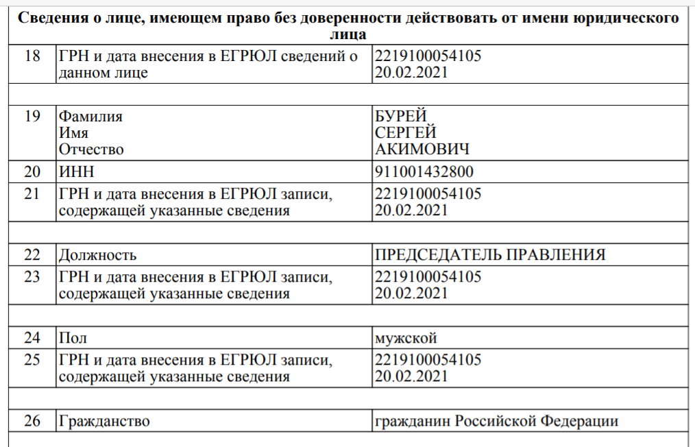 Согласно этой выписки председателем правления является Бурей Сергей Акимович.