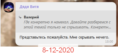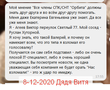 И тут Дядя Витя вытаскивает моё сообщение, где я указываю с какого региона произошёл взлом. В этом сообщении и намёка нет на Дядю Витю о чём я говорю в следующем сообщении.