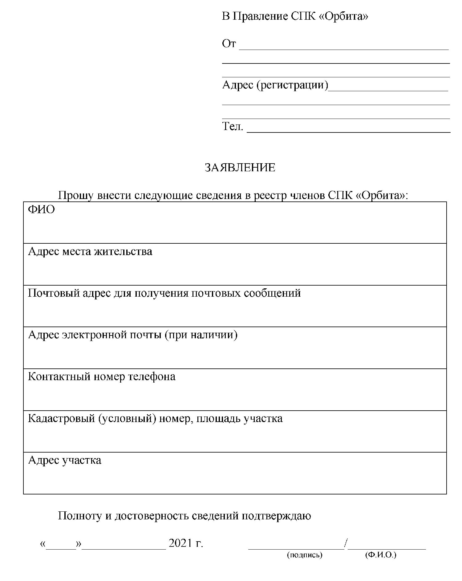 С 01 февраля 2021 года по 31 марта 2021 года производится формирование реестра СПК «Орбита»