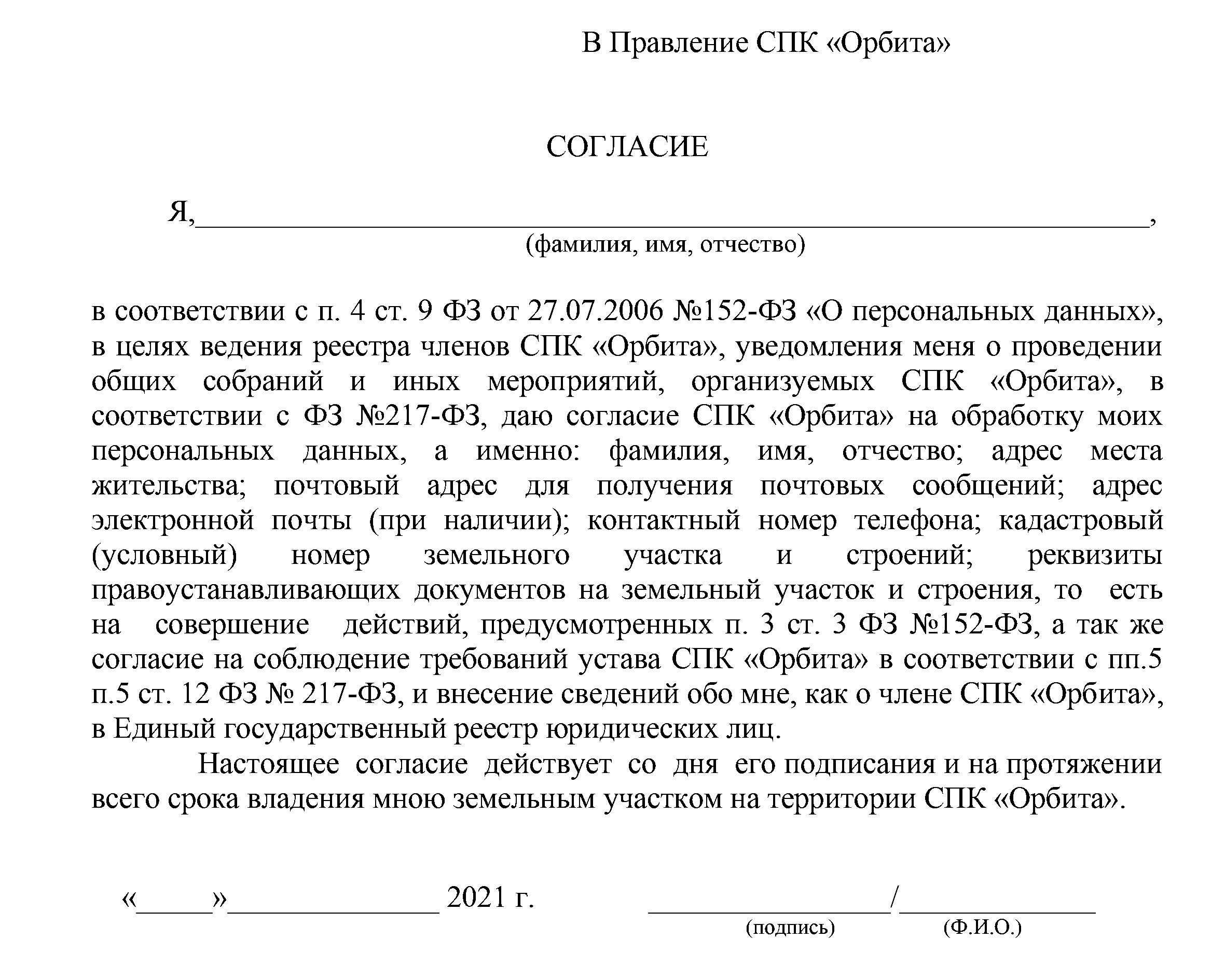 От правления кооператива СПК «Орбита»