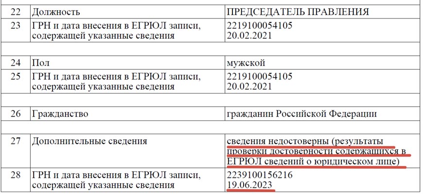Недостоверные сведения в ЕГРЮЛ — это ничто иное, как черная метка для организации. Как правило, руководителю в течение 30 дней присылается требование внести достоверные сведения. Если руководитель не в состоянии это сделать, то в ЕГРЮЛ вносится запись о недостоверных (ложных) сведениях. На языке бизнеса это звучит как получение черной метки.